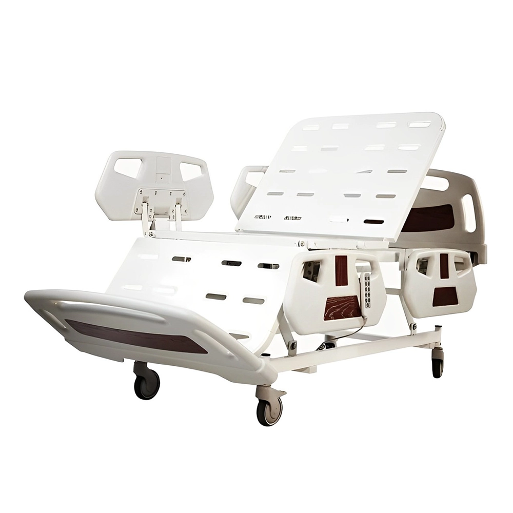 این گونه تخت ها دارای یک رویه 4 تکه می باشند از جنس ABS که جداشونده هستند و برای شستشو خیلی راحت می باشد. در ضمن دارای یکسری سوراخ هایی روی کفی تخت بیمار هستند که برای تنفس تشک بیمار در نظر گرفته شده است. این گونه تخت ها دارای یک مکانیزم حرکتی است که برای کاهش فشار روی موتورها تعیین گردیده است.این گونه تخت ها دارای یک سری مکانیزم هایی هستند که به روش قالب گیری بادی با پایه های فولادی و امکان نصب تجهیزات جانبی مانند پایه سرم و لوله تراکشن و چادر اکسیژن بر اینگونه تخت ها وجود دارد. در ضمن دارای ساید ریل های دو تکه از جنس ABS نیز می باشند در ضمن دارای تنطیم ارتفاع برقی نیز هستند و قابلیت دیگری که دارند دارای سه شکن 4 موتوره هستند که برای حرکت دادن راحت بیمار استفاده می گردد. چرخ این تخت ها دارای تحمل وزنی در حدود 350 کیلوگرم هستند و دارای یک شاسی بسیار قوی هستند. در ضمن دارای الکتروموتورهای DC هستند که بدون خطر برق گرفتگی برای رفاه حال بیشتر بیمار طراحی شده اند.4 چرخ ترمزدار بسیار بزرگی دارند که برای جابه جایی بهتر بیمار استفاده می گردد.در کنار تخت های خود دارای بد ساید های پروانه ای می باشند و شکن پشت تخت قابلیت تغییر زاویه خوابیده بیمار را از صفر درجه تا زاویه 85 درجه دارد و فرد را بالا می آورد.