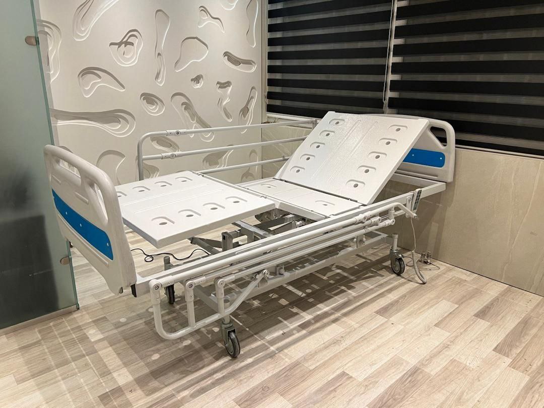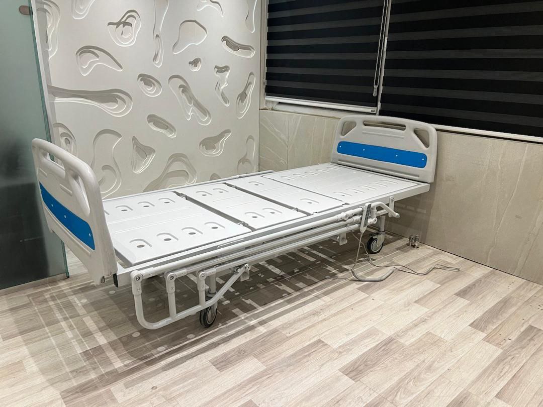 دارای محافظ مفصلی مستحکم جهت محافظت از بیمار -دارای کفی ABS چهار تکه قابل شستشو -دارای شکن سر (رست هد) با زاویه ۸۵ درجه و (رست فوت) با زاویه ۴۵ درجه بالا و دارای حالت دو شکن با ریل جغجغه ای در قسمت زیر پا بصورت سفارشی -دارای محفظه پایه سرم در یک طرف تخت -دارای قابلیت مانکی بار. -قابلیت سفارش دهی انواع چرخ ساده و ABS و قفل مرکزی -قابلیت اضافه کردن باتری بک آپ جهت مواقع قطعی برق -اضافه کردن نرس کنترل بر روی سرتخت زیر پا بصورت سفارشی ابعاد طول ۲۲۰ عرض ۱۰۰ و ارتفاع ۴۳ الی ۷۳ سانتی متر