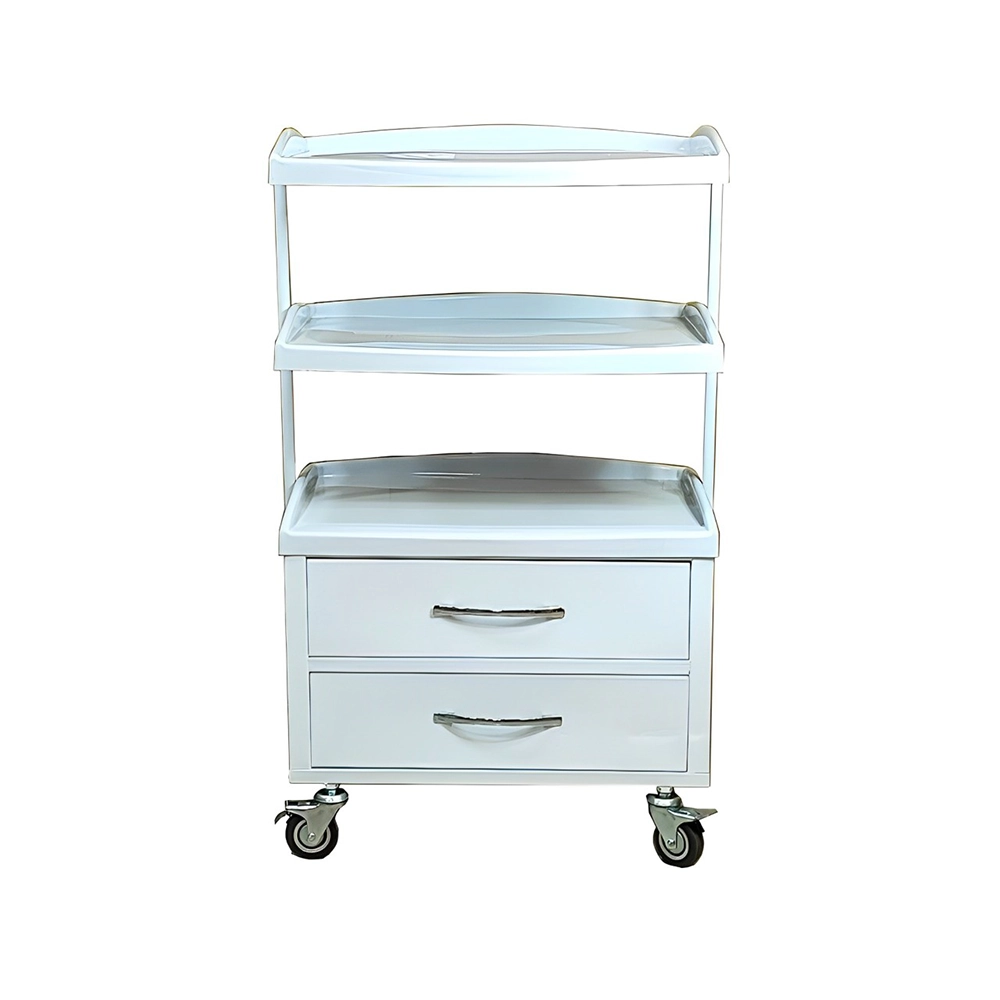 ترالی سه طبقه با دو کشو یک وسیله نقلیه است که در بیمارستانها و مراکز درمانی استفاده میشود. این ترالی دارای سه طبقه است که هر کدام از طبقهها دارای دو کشو میباشند. طبقههای مختلف ترالی امکان قرار دادن تجهیزات پزشکی، لوازم و ملزومات مورد نیاز درمانی را فراهم میکنند.